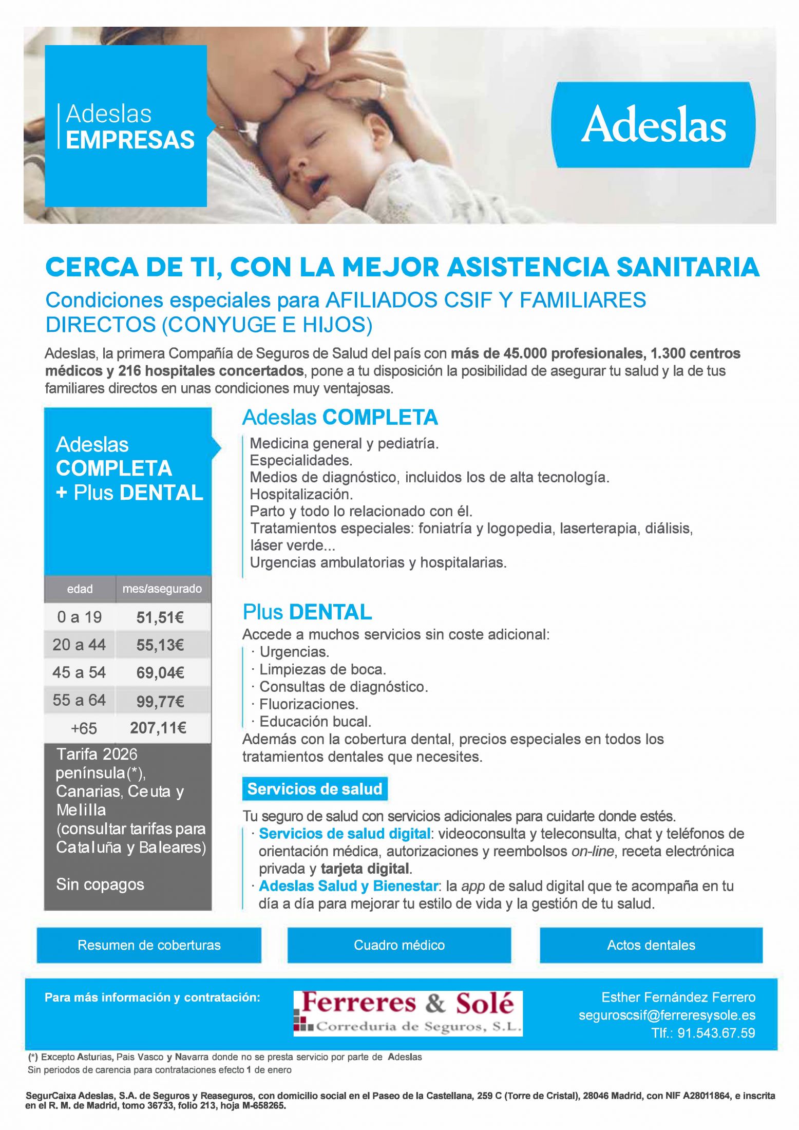 Puede consultar el cuadro medico de ADESLAS pinchandoaquí.